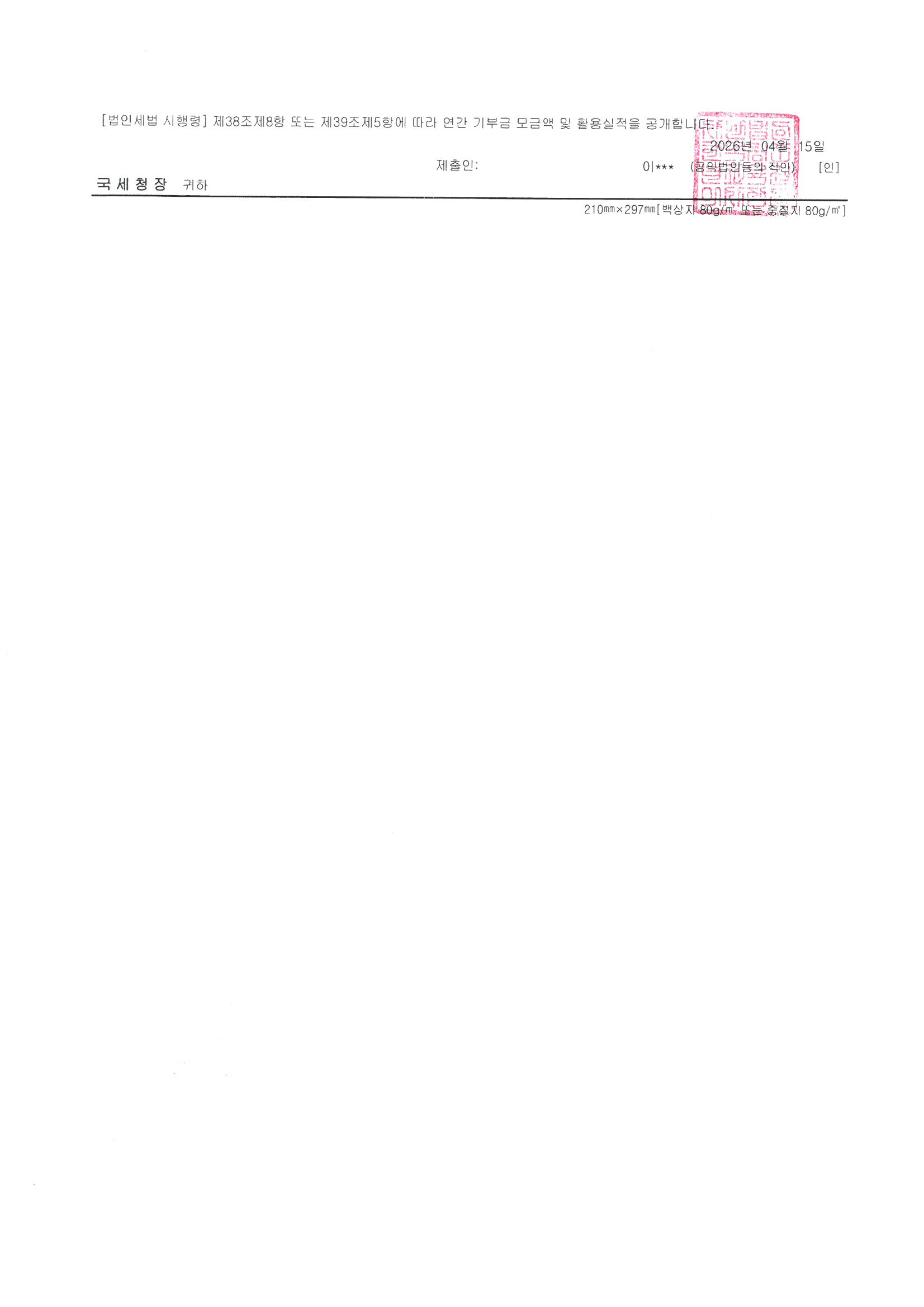2025년 연간 기부금 모금액 및 활용실적 명세서