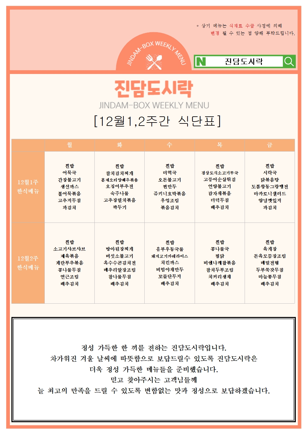 2025년 12월 1,2주차 식단표