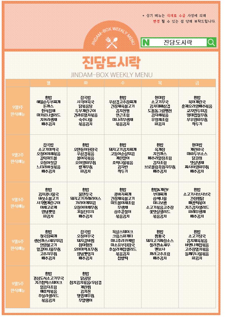 2025년 9월 식단표